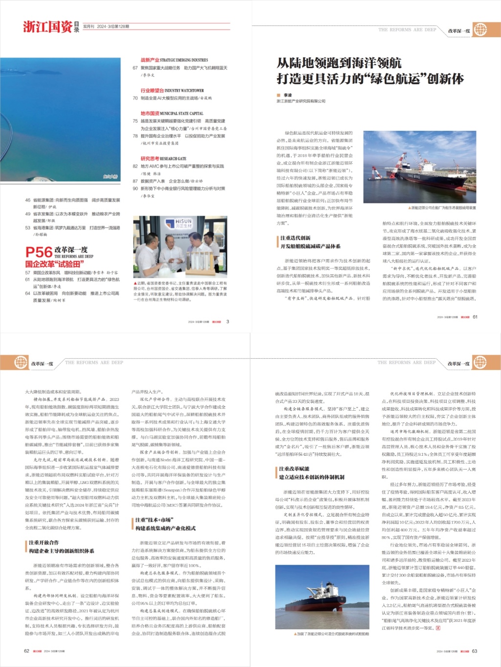 綠色航運(yùn)是現(xiàn)代航運(yùn)業(yè)可持續(xù)發(fā)展的必然,是未來(lái)航運(yùn)業(yè)的方向。省能源集團(tuán)抓住國(guó)際海事組織實(shí)施全球海域“限硫令”的機(jī)遇,于2018年?duì)渴执靶袠I(yè)民營(yíng)企業(yè),成立混合所有制企業(yè)浙江浙能邁領(lǐng)環(huán)境科技有限公司(以下簡(jiǎn)稱“浙能邁領(lǐng)”)。經(jīng)過(guò)六年的快速發(fā)展,浙能邁領(lǐng)已成長(zhǎng)為國(guó)際船舶脫硫領(lǐng)域的頭部企業(yè)、國(guó)家級(jí)專精特新“小巨人”企業(yè),產(chǎn)品市場(chǎng)占有率穩(wěn)居船舶脫硫行業(yè)全球前列;正加快布局節(jié)能降耗、減碳脫碳技術(shù)創(chuàng)新,為世界海洋環(huán)境治理和船舶行業(yè)清潔化生產(chǎn)提供“浙能方案”。