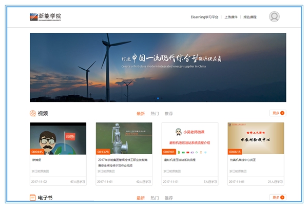 11月15日,浙能培訓(xùn)部推出E-learning升級(jí)版網(wǎng)絡(luò)學(xué)習(xí)平臺(tái)——浙能學(xué)院。新平臺(tái)加推多種新功能:視頻教學(xué),讓學(xué)習(xí)更加直觀可感;個(gè)性定制,一個(gè)屬于自己的學(xué)習(xí)成長(zhǎng)空間;自拍上傳,分分鐘讓你成為技術(shù)導(dǎo)師;交流互動(dòng),隨時(shí)隨地碰撞思想的火花;手機(jī)客戶(hù)端,讓學(xué)習(xí)成為無(wú)處不在的習(xí)慣……