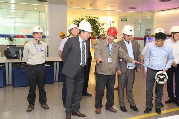 嘉華發電公司領導現場介紹8號機組生產情況。 鄭嘯 攝