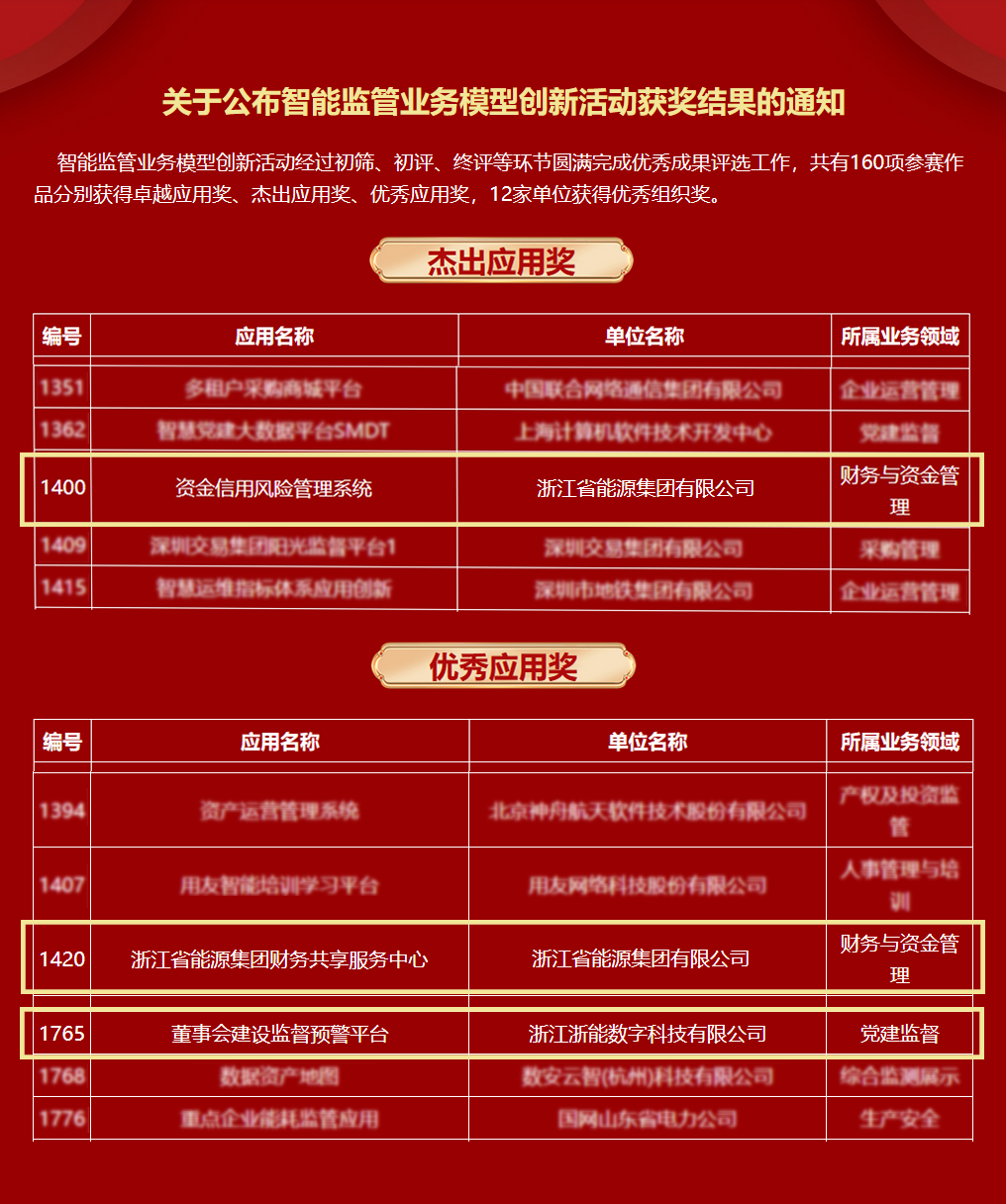 國務(wù)院國資委智能監(jiān)管業(yè)務(wù)模型創(chuàng)新活動獲獎(jiǎng)名單揭曉 浙能多個(gè)項(xiàng)目上榜